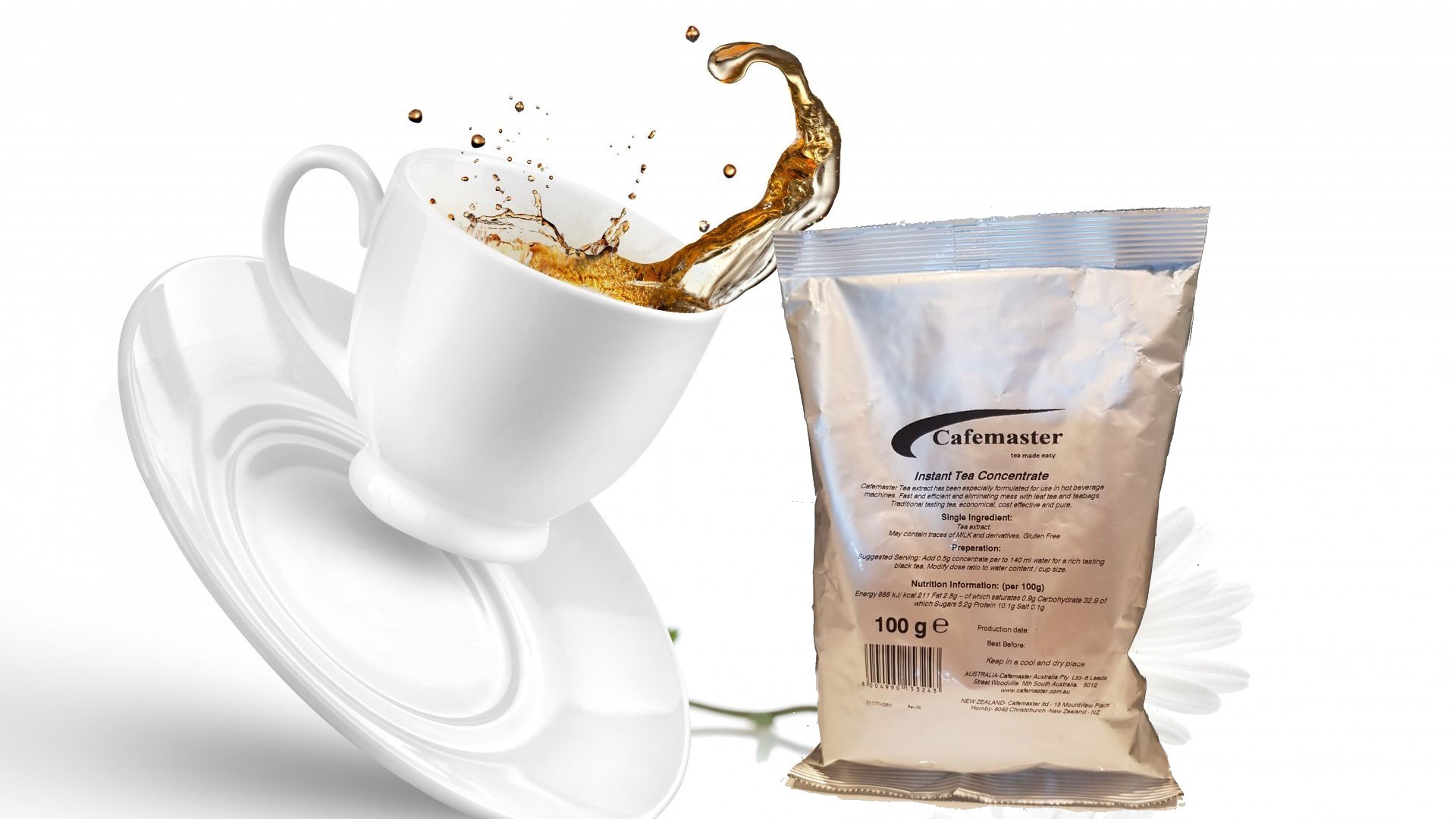 Cafemaster fine granulated Tea Concentrate has been especially formulated for Catering and Hospitality. Fast, efficient, economical and eliminating the mess associated with leaf tea & tea bags. The tea originates from some of the finest growing regions of the world, where it undergoes a special production process so as to capture all the nutritional values and flavour of pure leaf tea. Ideal for bulk catering, functions, nursing and hospitals, airlines, armed services, cruise ships, institutions, and outside events, not to mention automatic beverage machines. One pack (100g) will prepare around 20 litres of pure black tea. Can be added into a hot water urn for instant tea self-serve without the added cost of brewing equipment and waste associated with same. With a best before of up to 30 months, it saves space and storage ready to use anywhere anytime. View our products, For further information, Contact Us.